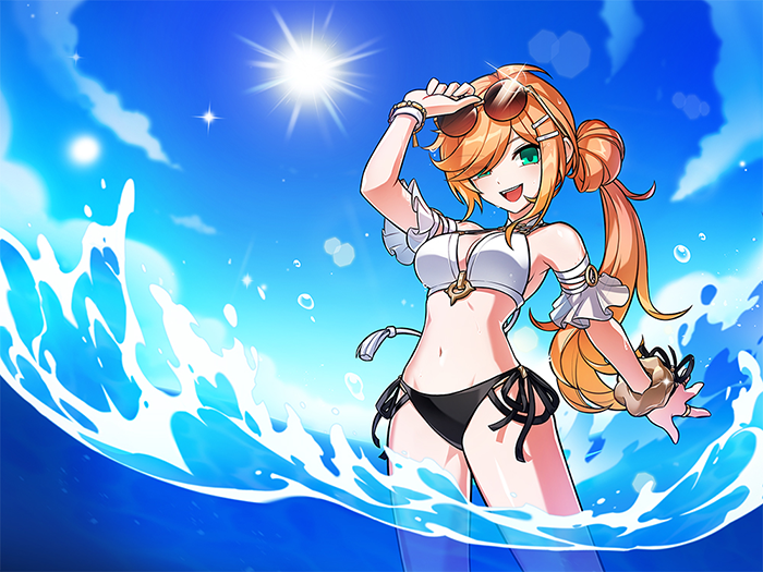 新地区开放的同时,新时装“夏日地平线”也火热上线。为了享受清晨的夏日大海而准备的服装。戴上新饰品“夏日地平线太阳镜”,我们一起拍张照吧?